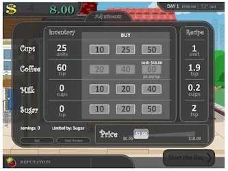 Make as much money as you can selling lemonade. Lemonade stand game is a very simple pc game which can be played by both adults and children. Coffee Shop Cool Maths Games Cheats Games.